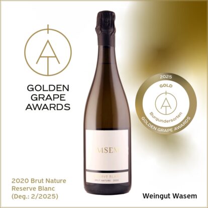 Beim Golden Grape Award 2025 wurde der Sekt Reserve Blanc – brut nature 2020 des Weinguts Wasem in der Kategorie Burgundersorten mit der Goldmedaille ausgezeichnet.