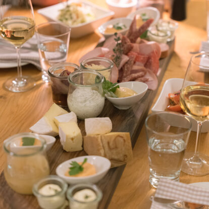 Freuen Sie sich auf das wohlschmeckende Zusammentreffen der rustikalen Brotzeit und unseres cremigen Chardonnays.